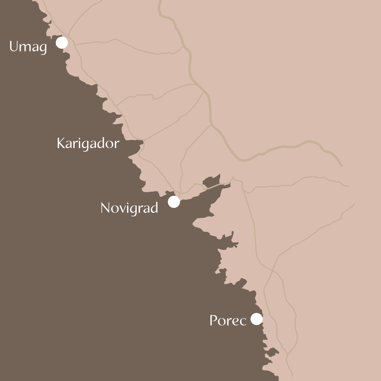 Villa Salinas are situated just 200 meters from the scenic coastline in the charming village of Karigador. The area offers a peaceful ambiance and has great development potential, with plans for a marina and a golf course nearby. Additionally, the region is renowned for its exceptional restaurants, wineries, and unique culinary experiences.